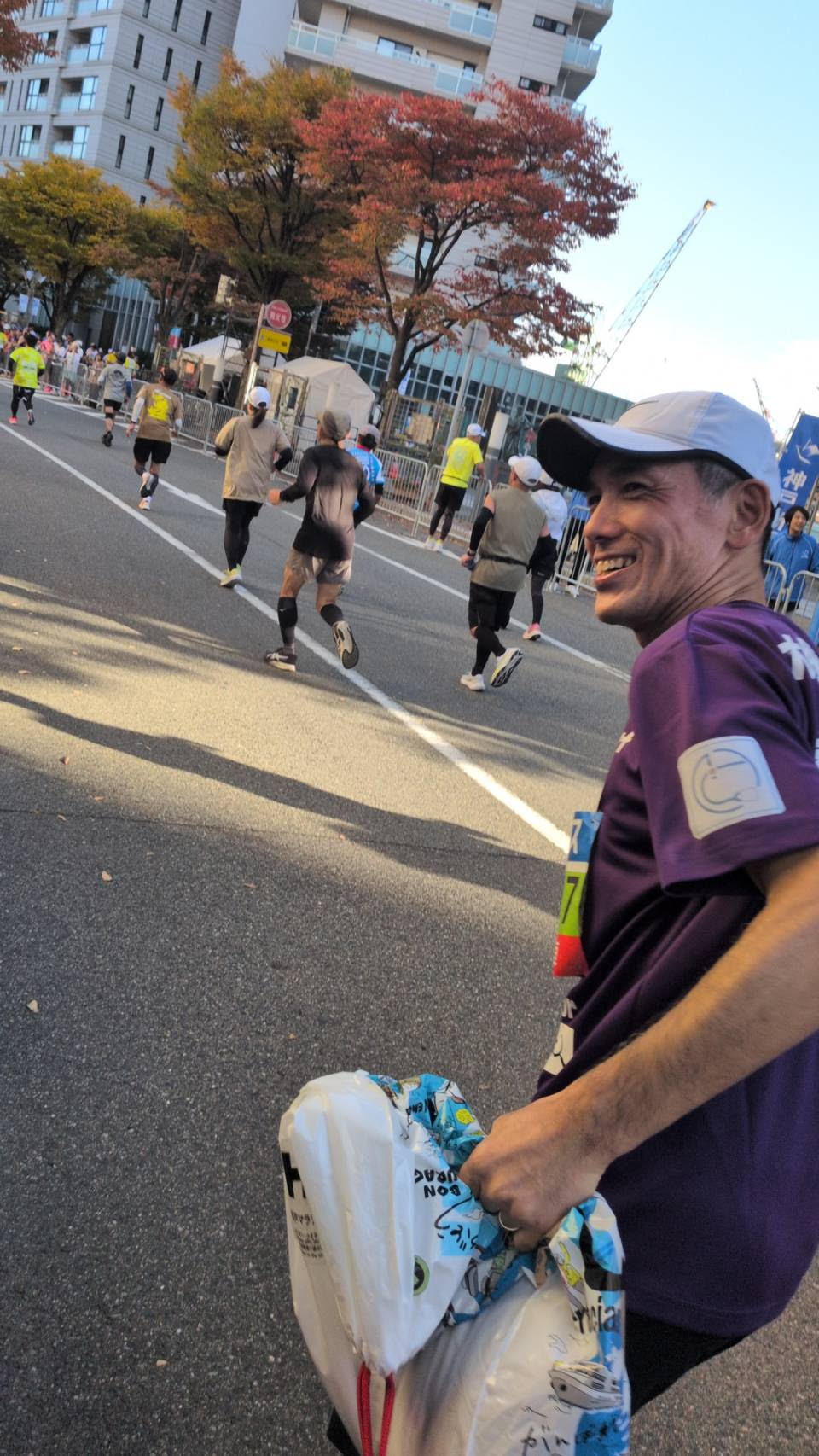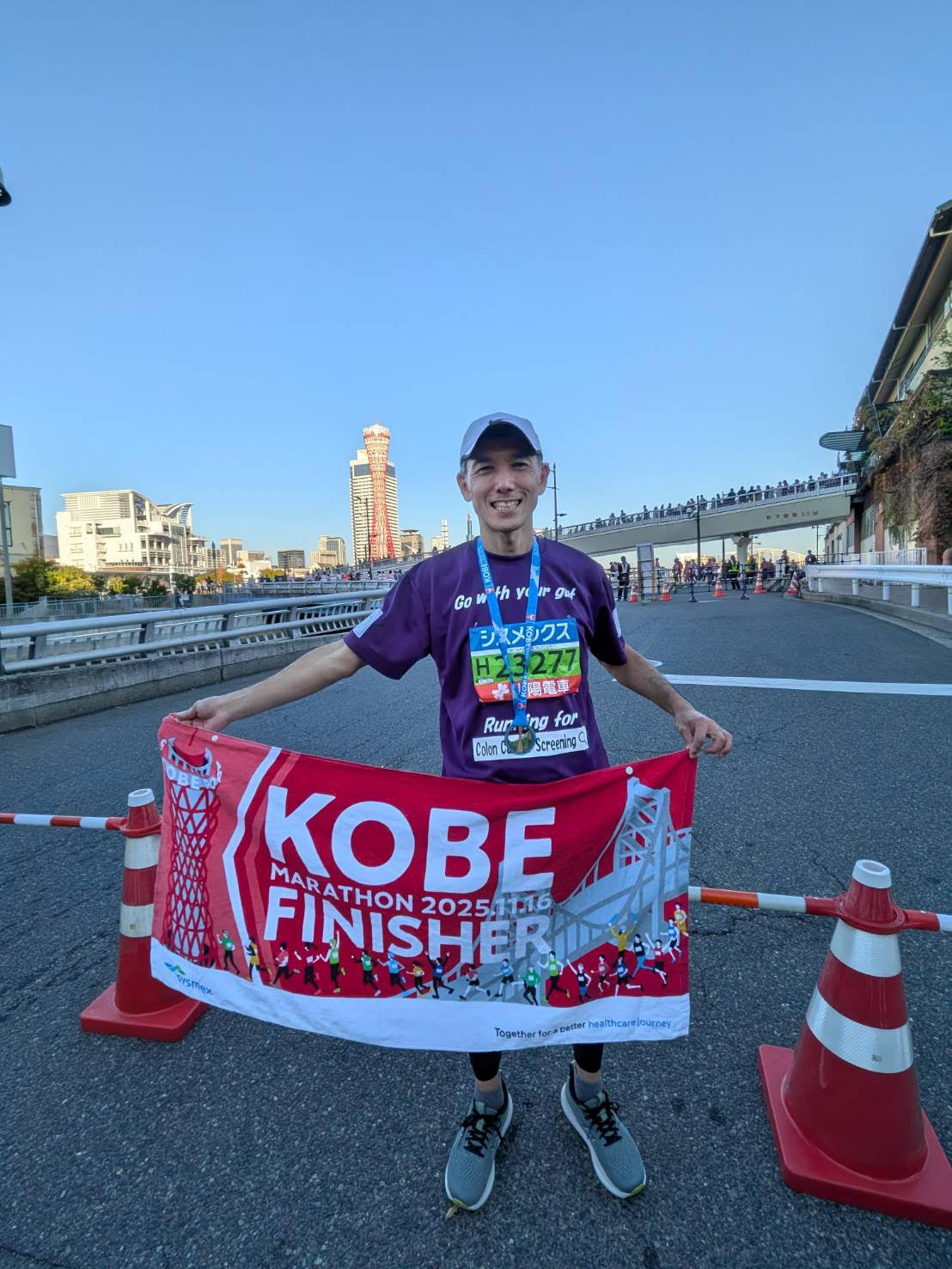 沿道からの温かい声援に背中を押していただき、おかげさまでなんとか“初マラソン”を完走(25Km付近で足がつったため、その後はRun and Walk)することができました。